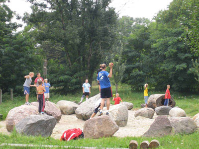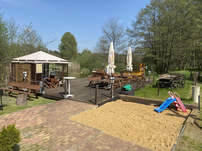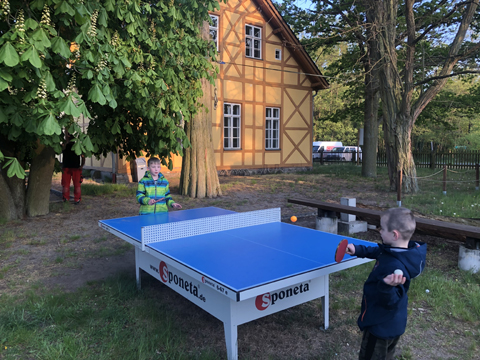 SPIELPLATZ Für Kinder gibt es einen Buddelkasten, Schaukeln + Rutsche und ein großes Indianer-Tippi. Der Findlingpark ist immer ein tolles Erlebniss. Eine Outdoor-Tischtennisplatte steht auch zur Verfügung.