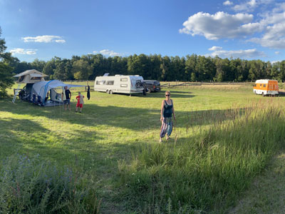CAMPINGWIESE Unsere Campingwiese liegt idyllisch an der Rinderkoppel. Ein Stromanschluss für 3 Abnehmer ist vorhanden. Sanitäre Anlagen stehen zur Verfügung. Bitte vorher unbedingt anmelden. |