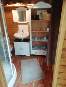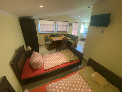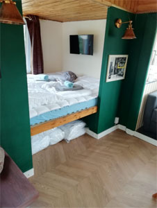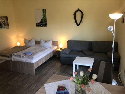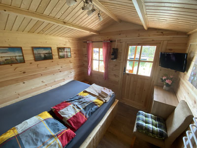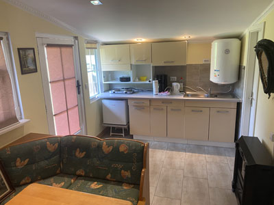 FERIENHAUS Unseren Gästen steht ein Wohn-Schlafraum mit kleiner Küche zur Verfügung. Das Häuschen hat ein eigenes Bad mit Dusche. Maximal 2 Kinder können in einer kleinen Kammer in Etagenbetten schlafen. Die Zimmer verfügen über Elektroheizung. Im Schlafbereich gibt es TV. |