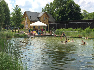 BIOBADETEICH Hier kann im Nichtschwimmerbereich oder im hinteren 1,80 tiefen Becken gebadet werden. Die Reinigung erfolgt ohne Chlor wie in einem natürlichen See über Mikroorganismen und den Schilfgürtel. Kleine Fische und Frösche fühlen sich hier auch heimisch. Die Wasserqualität wird in der Saison alle 2 Wochen im Labor geprüft. |