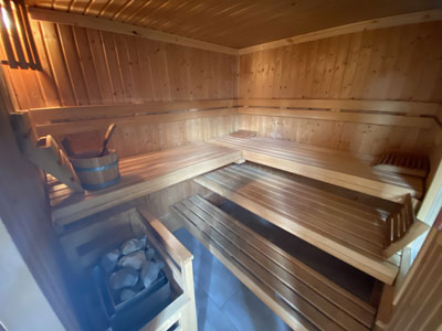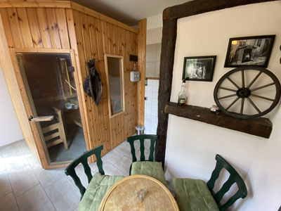 SAUNA Eine Sauna für bis zu acht Personen steht unseren Gästen gegen Gebühr zur Verfügung. Als Abkühlung dienen Innendusche, Außendusche und ein Sprung in den Badeteich. |