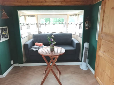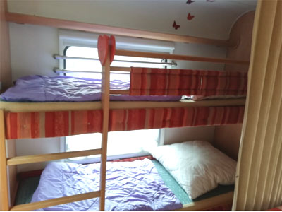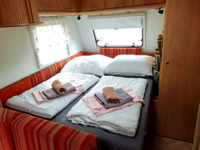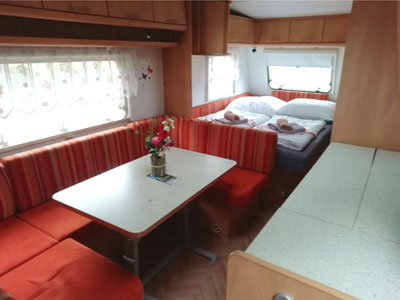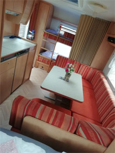 WOHNWAGEN Wohnwagen mit Sitzecke und einem Bett (150 x 200 cm) Doppelstockbett für 2 weitere Personen